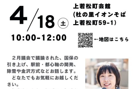 - 4月に「金沢市議会議員・広田みよの議会報告会」を4回予定しています【4月の議会報告会のお知らせ】 いつもありがとうございます。 お待たせいたしました。 4月実施の議会報告会のお知らせです。 ご都合のよい日程、場所にあわせてお選びいただけます。 どなたでもご参加ください(^▽^)/