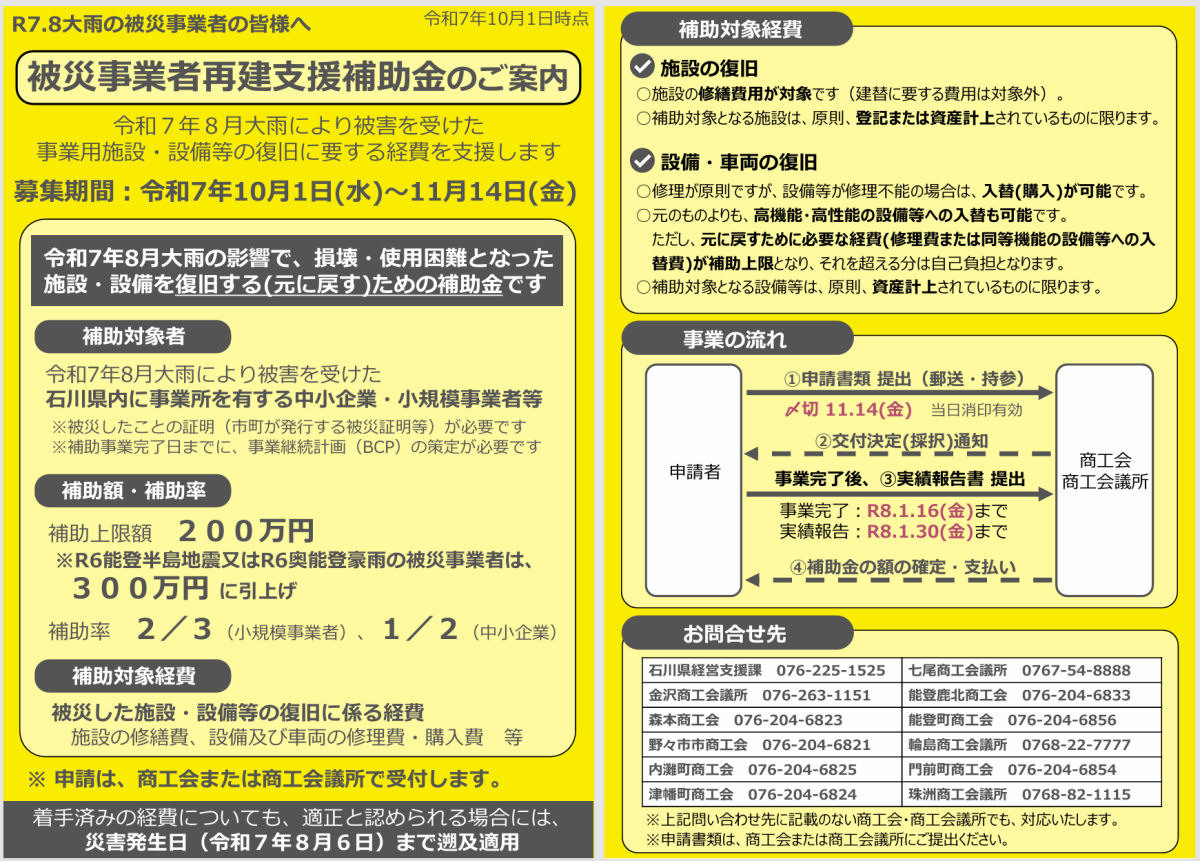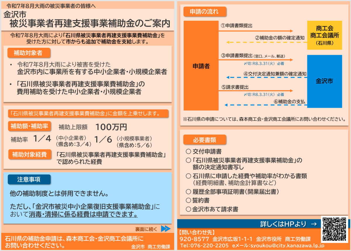 令和7年8月大雨により被害を受けた事業者への支援について/金沢市公式ホームページ いいね金沢