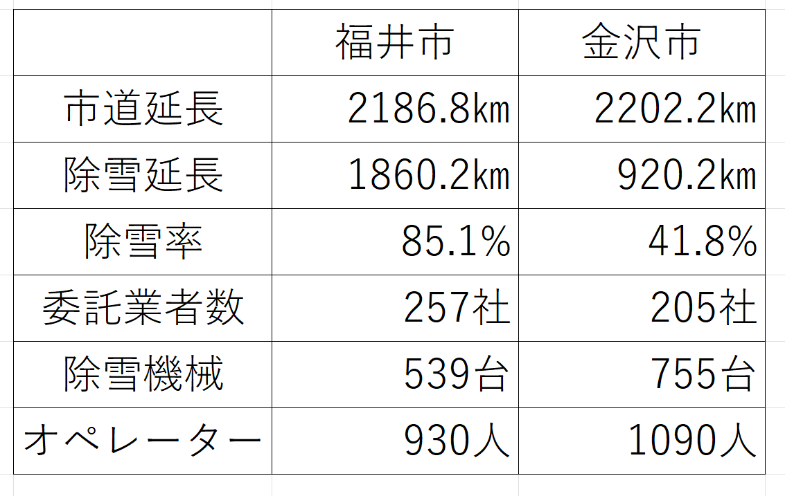 金沢市は戦災に遭いませんでした。そして大きな地震もない。そうした中で昔からの街並みが、これは旧市街地だけではなくて各字のところの集落の中に入っても、ここは車社会を前提とした街並みがつくられてこなかった、そのような中で除雪は非常に難しい体制にあります。他都市と簡単に比べることができない、金沢市だからこその特徴だというようにも捉えております。さきほど所管局長が答弁したとおり、除雪の委託業者やオペレーターなどには限りがあります。また業者の掘り起こしや担い手の確保には努めているところではありますが、業務上では除雪路線を一気に大幅に拡大するということは非常に難しいと捉えています。一方で、昨年度からGPS機能を有する除雪管理システムを導入しまして、除雪作業の迅速化と効率化に努め、データに基づいて委託業者の担当路線を見直すなど、除雪体制の強化を図っているところであります。