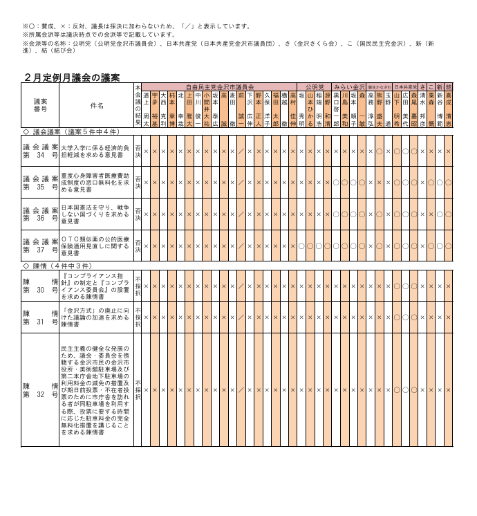 議決結果・議員の賛否一覧