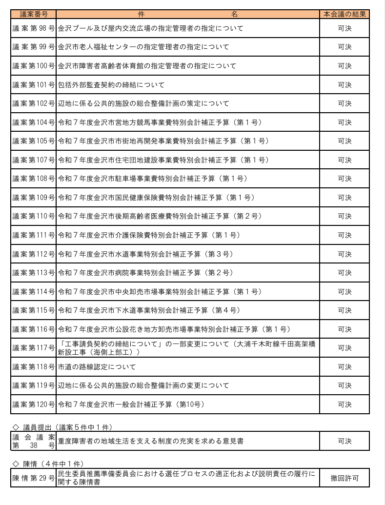 全会一致の議案