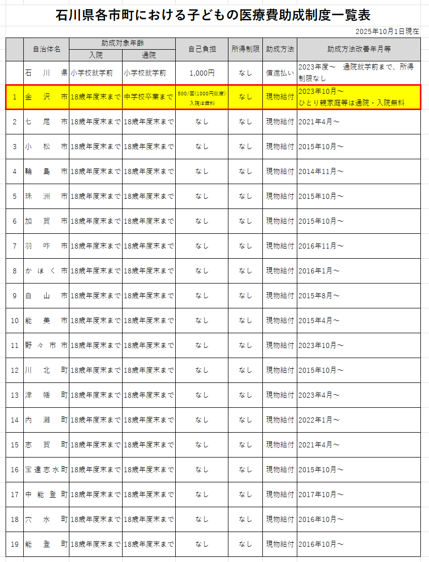 それがいよいよ金沢市も、通院・入院ともに窓口で完全無料化という流れが到来したのです。